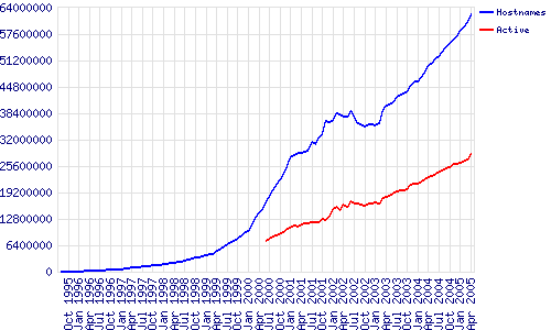 Рис. 1.4. Рост числа узлов WWW в период 1994-2005 годы