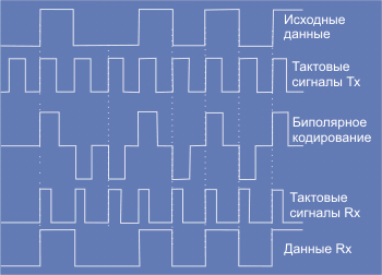 Рис. 2.2.5. Пример биполярного кодирования сигнала (схема RZ - return-to-zero)