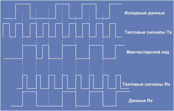 Рис. 2.2.6. Кодирование сигнала с использованием манчестерского кода.