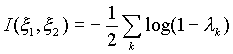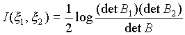 x1={x (1),…, x (m)}, x 2 = {x (m+1),…, x (m+n)}, причем корреляционная матрица B общей совокупности x (1),…, x (m+n) является невырожденной, количество информации I(x 1, x 2) может быть выражено следующей формулой:
