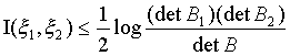 с соответствующими корреляционными матрицами B1, B2 и B количество информации I(x 1, x 2) удовлетворяет неравенству