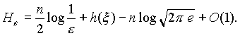 Величину H=He, определенную как He = inf I(x, h), обычно называют e-энтропией случайной величины x (нижняя грань берется по всем случайным величинам h, удовлетворяющим указанному условию e-близости случайной величине x).