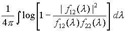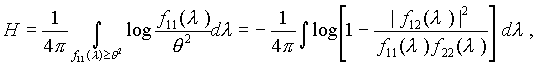 [в последнем выражении интегрирование ведется в пределах -p £ l £ p для дискретного времени t и в пределах -∞ <l <∞ для непрерывного t), где fz z (l) - спектральная плотность гауссова процесса z (t), функция f(l) имеет вид