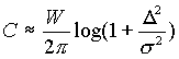 Предположим также, что ограничения на входной процесс состоит в том, что M[x 1(t)]2 £ D 2 (постоянная D2 ограничивает среднюю энергию входного сигнала). Пропускная способность такого канала может быть вычислена по формуле