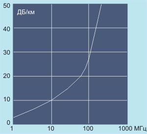 Рис. 3.1.2. Зависимость ослабления сигнала в кабеле от его частоты