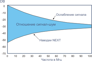 Рис. 3.1.3. Зависимость наводок NEXT от частоты передаваемого сигнала.