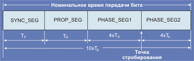 Номинальное время, выделенное для передачи одного бита, включает в себя четыре временные области: sync_seg, prop_seg, phase_seg1, phase_seg2 (рис.3.4.4.3).