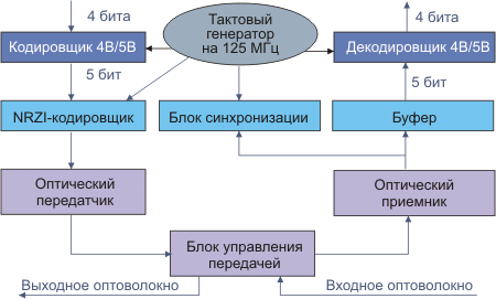 Рис. 4.1.6.3. Схема физического интерфейса FDDI
