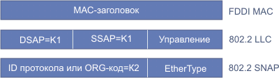 Полная длина LLC- и SNAP-заголовков составляет 8 октетов.