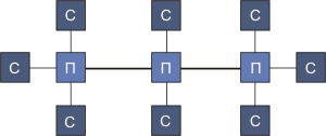Рис. 4.1.7.1. Пример топологии сети hippi (П – переключатели, С – станции)