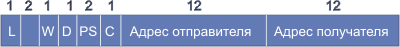 Поле L=1 – локально заданный формат; W=1 указывает на 64-битное соединение; D=1 отмечает смену положения адресов отправителя и получателя; PS – биты выбора пути (path selection); С – задержка вызова при занятой линии (camp-on; переключатель не разрывает соединения при занятом получателе, а ждет его освобождения). 12-битовые адреса отправителя и получателя часто делятся на 6-битовые секции, определяющие адрес переключателя и номер порта. HIPPI-IPI (intelligent peripheral interface) представляет собой быстродействующий интерфейс периферийных устройств, выполняющий команды SCSI. Расширение HIPPI-LE (link encapsulation) обеспечивает поддержку IEEE 802.2.