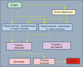 Обмены платежа могут реализовываться различными способами. Наиболее общий случай, где сделка зависит от типа и платежного протокола, показан на диаграмме рис. .3. Возможны и более простые платежные обмены.