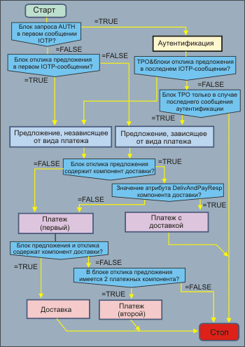 Операции IOTP состоят из различных комбинаций этих торговых обменов. Например, операция покупки IOTP включает в себя обмены Предложения, Оплаты и Доставки. А операция обмена ценностями IOTP состоит из предложения и двух обменов оплаты.