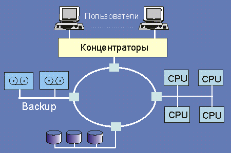 Следующим по популярности после csma/cd является маркерный доступ (Token Ring, Arcnet и FDDI), который более гибок и обеспечивает приоритетную иерархию обслуживания. Массовому его внедрению препятствует сложность и дороговизна. Хотя региональные сети имеют самую разнообразную топологию, практически всегда они строятся на связях точка-точка.