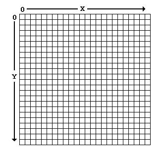 Thankfully, Java does away with the complications of displaying graphics in a window by adopting a single coordinate system. This coordinate system has its origin (point 0,0) in the upper-left corner, with the X axis increasing to the right, and the Y axis increasing downward, as shown in Figure 16.1.