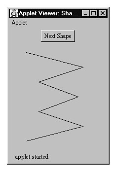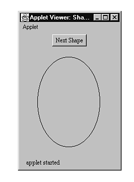 To run ShapeApplet, use the HTML document shown in Listing 16.2, except change all occurrences of RectApplet to ShapeApplet. When you run the applet with Appletviewer, you see the window shown in Figure 16.6. To change the shape displayed in the applet's canvas, click the Next Shape button.