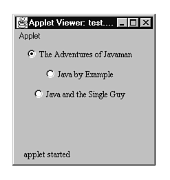 Now, when the applet appears, the user sees a list something like that shown in Figure 19.3. In the figure, the first option is selected. If the user decides to click a different option, the first option becomes unselected and the new one selected. Notice that exclusive checkboxes are round rather than square.