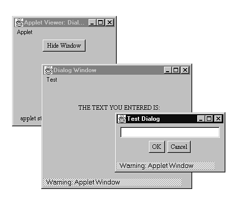 Figure 24.1 : This is DialogApplet running under Appletviewer.