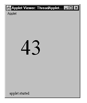 To understand about threads, you really have to dig in and use them. So in this section, you'll put together an applet that associates itself with a Thread object and runs the thread to control a very simple animated display. The animation in this case is not a bunch of space invaders landing to take over the earth, but rather only a changing number that proves that the thread is running. Listing 31.3 is the applet in question, which is called ThreadApplet. Figure 31.1 shows the applet running under Appletviewer.