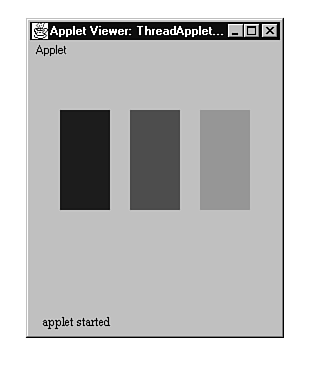 The ThreadApplet3 applet is unique with regards to other applets in this book because it's the only applet that takes full advantage of the applet's life-cycle stages. In the init() method, the applet creates the two threads. The different boolean values given as the constructor's second argument cause the first thread to count forward and the second thread to count backward.