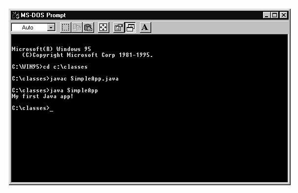 Building a Java application isn't any more difficult that building an applet, although the steps are slightly different. Follow the steps below to compile and run the SimpleApp application.
