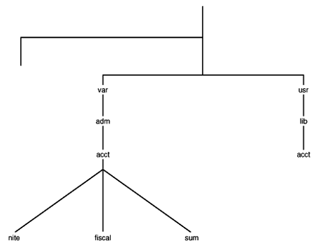 The nite, fiscal and sum directories must exist under /var/adm/acct so that storage of system accounting information can be maintained. Create the /var/adm/acct/nite, /var/adm/acct/fiscal, and /var/adm/acct/sum directories with permissions setting of 755 with owner and group set to adm. The following generalizes the usage of these directories and shows a sample directory listing of /var/adm/acct.