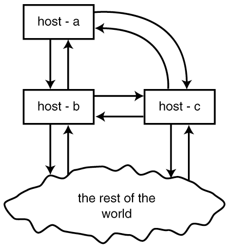 The news server signals the end of any message or command with a line consisting of a single dot (.). If any line of text actually starts with a dot, the server adds another one to indicate that it is not the end of message marker. Listing 25.1 provides an example of the operation of NNTP between a newsreader and USENET server. In this example, the client requests to read a single news article that is contained within a particular newsgroup--notice how the server responds to the client NNTP requests with a status line and one or more lines of text. Listing 25.1. Example operation of the NNTP application.client attaches to selected newserver 200 usenetserver news server ready - posting ok client requests a list of available newsgroups LIST 215 list of newsgroups follows alt.2600 alt.2600.aol ... ... comp.protocols.snmp comp.protocols.frame-relay comp.protocols.tcp-ip ... ... ... select a particular group GROUP comp.protocols.tcp-ip 211 86 1001 1087 comp.protocols.tcp-ip group selected ARTICLE 1002 220 1002 <13343@darkstar.com> Article retrieved, text follows Path: From: Newsgroup: comp.protocols.tcp-ip Subject: HTTP Request Formats Date: 8 March 1997 20:21:32 EST Organization: Deloitte Touche Consulting Group message body appears here . message response is terminated with a single period client ends session using the quit command. QUIT Sharing News Over the NetworkIf you have several hosts on a local area network (LAN), you'll want to share news among them to conserve disk space. As mentioned previously, if you carry all possible newsgroups, your news spool needs about a gigabyte of disk space, more or less, depending on how long you keep articles online. A year from now, who knows how much you'll need? It makes more sense to add disk capacity to a single host than to add it to all your hosts. There are two ways to share news over a LAN. If all of your hosts run a network file system such as Sun Microsystem's NFS or Transarc's AFS (Andrew File System), you can export the news host's spool directory to them, or use NNTP to transfer news from a single server host to client newsreaders and news posting programs. An alternative approach would be to use NNTP to transfer news from a single server host to client newsreaders and news posting programs. The only requirements for the client hosts are that they be able to open up a TCP/IP connection over the network and have client software that understands NNTP. Most common UNIX-based newsreaders and news posting programs have built-in NNTP support, and there are many NNTP clients for non-UNIX operating systems such as DOS, VMS, VM/CMS, and others. An NNTP daemon runs continuously on the news server host, listening on a well known port, just as the Simple Mail Transfer Protocol (SMTP) server listens on a well known port for incoming e-mail connections. NNTP client programs connect to the NNTP server and issue commands for reading and posting news articles. For instance, there are commands to ask for all the articles that have arrived since a certain date and time. A client newsreader can ask for those articles and display them to the user as the NNTP server ships them over the network. Hosts with which you exchange news connect to the NNTP server's port and transfer articles to your host. NNTP servers usually have some form of built-in access control so that only authorized hosts can connect to them--after all, you don't want all the hosts on the Internet to be able to connect to your news server. Transferring News to Other HostsWhen a posting program hands an article to the news system, it expects a copy of the article to be deposited in the local news spool (or the news spool of the local NNTP server), sent to other hosts, and eventually sent to the rest of USENET. Similarly, articles posted on other USENET hosts should eventually find their way into the local (or NNTP server's) spool directory. Figure 25.2 illustrates a simple set of connections between hosts transferring news. The incoming and outgoing lines emphasize that news is both sent and received between each set of hosts. FIGURE 25.2. USENET news is transferred by a flooding algorithm, which means that when a host receives an article, it sends it to all other hosts with which it exchanges news, and those hosts do the same. Now suppose that someone on host-b in Figure 25.2 posts a news article. Because of the flooding algorithm, host-b sends the article to host-a, host-c, and any other hosts with which it exchanges news. Host-c gets the article and does the same, which means it gives the same article to host-a, which may try to give it back to host-b, which already has a copy of the article in its news spool. Further, since host-b gave host-a the article, it will try to give it to host-c, which already got it from host-b.. It's also possible that host-a got a copy of the article from host-b before host-c offered it and will want to give it to host-c.. Just to keep the news administrator's life interesting, no one can say whether any other hosts will ship the same article back to host-b or host-c. (Well-behaved hosts should avoid transferring articles back to the hosts from which they originally received them, but on USENET, it's best to plan for worst case behavior from another site's software.) How do these hosts know when articles are duplicates and should be rejected? Obviously, they can't compare a new article with every article currently in the spool directory. The news system software uses two different methods to avoid duplicate articles. The first is the Path header, which is a record of all the hosts through which a news article has passed. The Path header is just a list of hosts separated by punctuation marks other than periods, which are considered part of a hostname. A Path such as hst.gonzo.com,host-c.big.org!host-b.shark.com means that an article has been processed by each of the sites hst.gonzo.com, host-c.big.org and host-b.shark.com. Any of those hosts can reject the arti