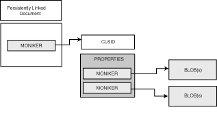 Because of the shortcomings of the existing persistence mechanisms, Microsoft developed new persistence mechanisms and monikers that extend the concept of linking and embedding beyond the OLE Compound Document architecture (see Figure 13.4). These new mechanisms also allow for asynchronous retrieval of properties and BLOBs from remote sites, and are as follows: