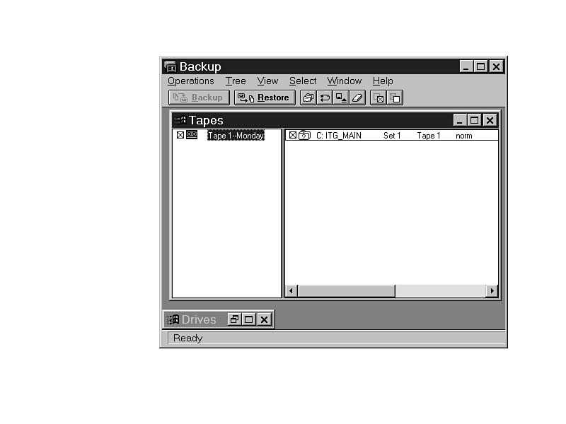 select the Tapes window (as shown in Figure 5.3). Select the tape and tape set you