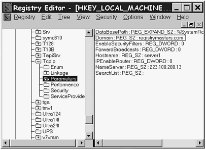 the system as a whole. The settings that are unique to the card are set in HKEY_LOCAL_MACHINE\System\ Figure 18.5. General TCP/IP settings in the Registry.