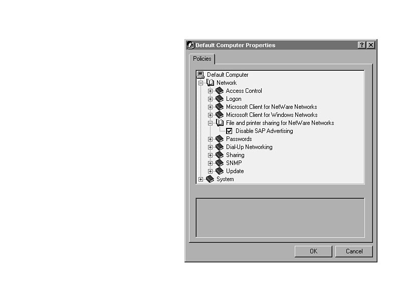 -33-Managing Windows 95 Users with System Policy EditorWindows 95 was the first of the Windows operating systems with System Policy Editor. It is an outstanding program that gives a tremendous amount of capabilities to administrators, who can now control Windows 95 systems across the network. The System Policy Editor in Windows NT Server 4.0 has a few extra features, but, unfortunately, it will not create policy files that are compatible with Windows 95. The only way to create compatible policy files is to use the Windows 95 System Policy Editor.
