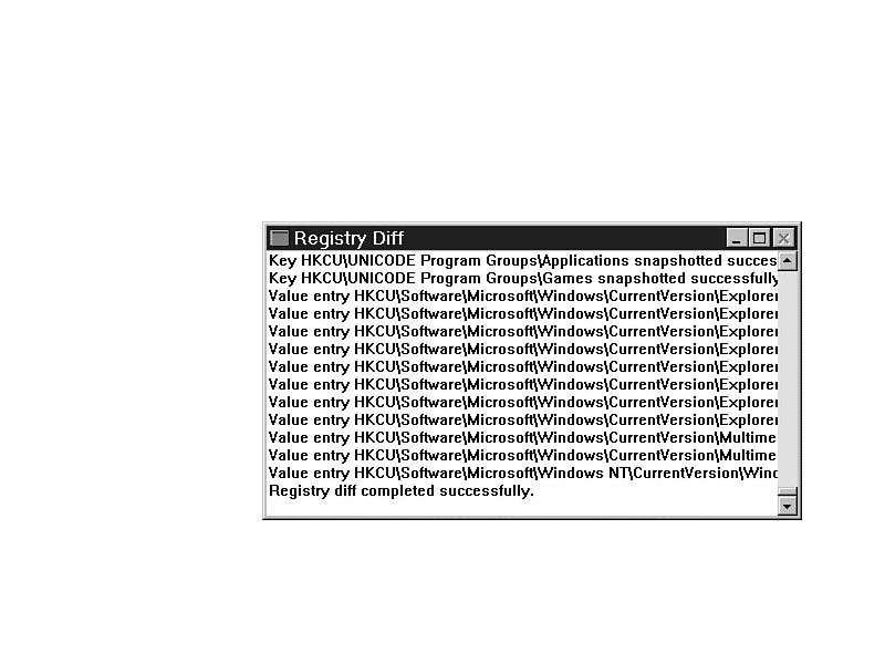 the SYSDIFF SummaryUse SYSDIFF.EXE to update the Registry during installation. It will greatly enhance your installation and cloning procedures, plus give you opportunities to create loadable .INF files for Registry repair. |