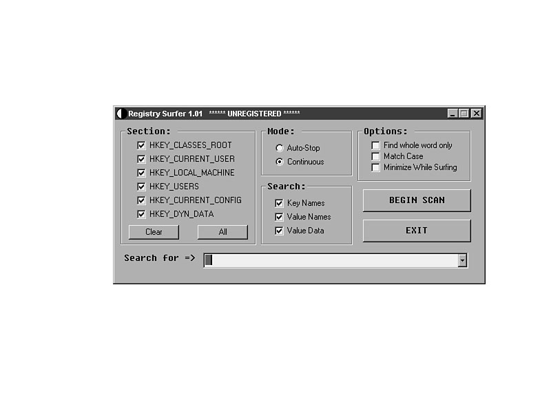 a third-party search tool that will enhance the search process. Registry Surfer (RegSurf)