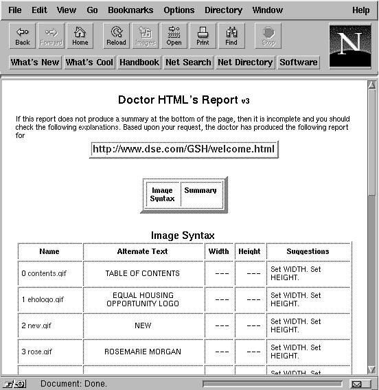 Figure 1.10: Doctor HTML makes suggestions to improve the images on the page.