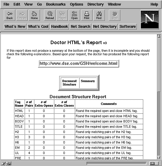Figure 1.9: Doctor HTML checks the overall structure of the document.