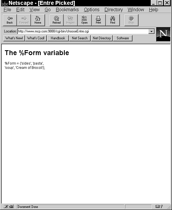 At any rate, she deftly writes a CGI script to handle the data (see Listing 19.9).