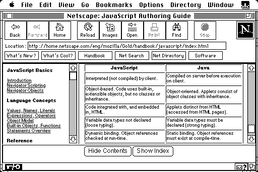 A third major extension to Netscape in version 2.0 is JavaScript. Whereas HTML is a markup language intended to describe the structure of a document, JavaScript is a programming language intended to do work.