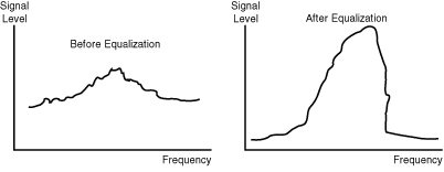 Recall from Chapter 33, "How to Add High-End Graphics," that the human eye is more sensitive to some colors than others and that high-end graphics systems compensate for this fact by boosting certain colors. Sound is no different. The ear is particularly sensitive to sounds between 2000 and 4000 Hz. Equalization (EQ) boosts the midrange frequencies that carry the desired information and cuts higher frequencies.