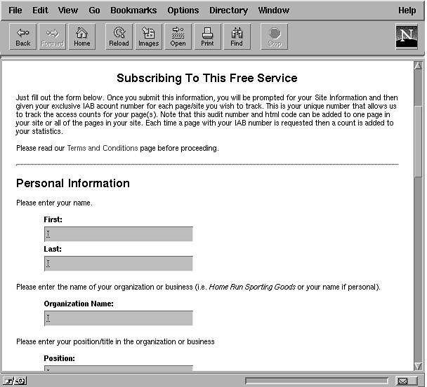 Some site owners think that by putting up ten, twenty, or more pages of content that they're putting up too much material. They argue that "the visitor will never want to wade through all that material." One lesson of the Web is that many visitors do want to read all of the material-that's the nature of the Internet audience. Many others will read at least part of the material. Remember to keep the internal hyperlinks current so a user can go directly to the pages that interest them. Use the logs and the page access counts to find pages that are seldom accessed, or that are consistently accessed for only a few seconds before the visitor moves on. Improve these pages, give more visibility to their links, or delete them. |