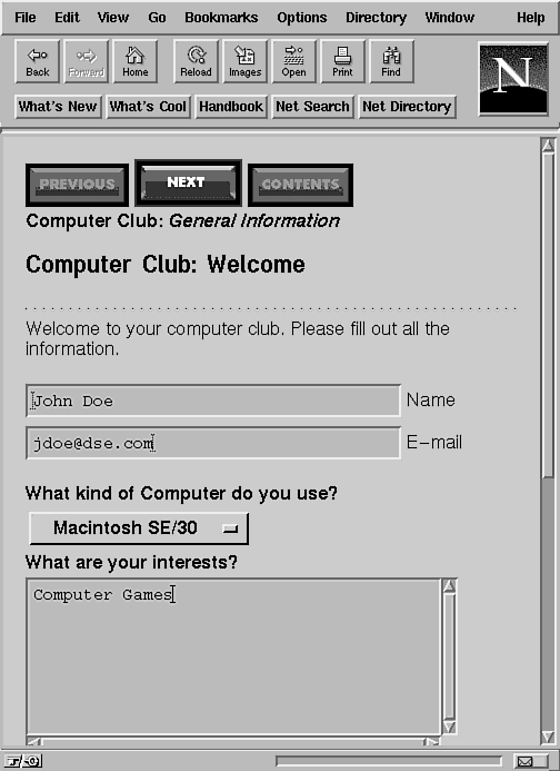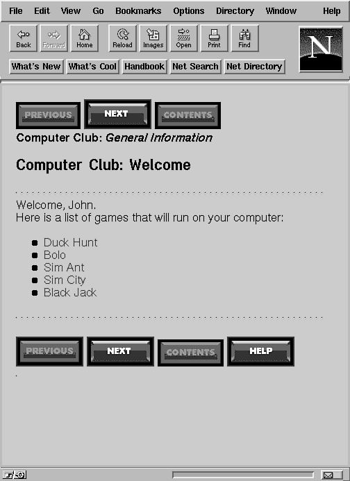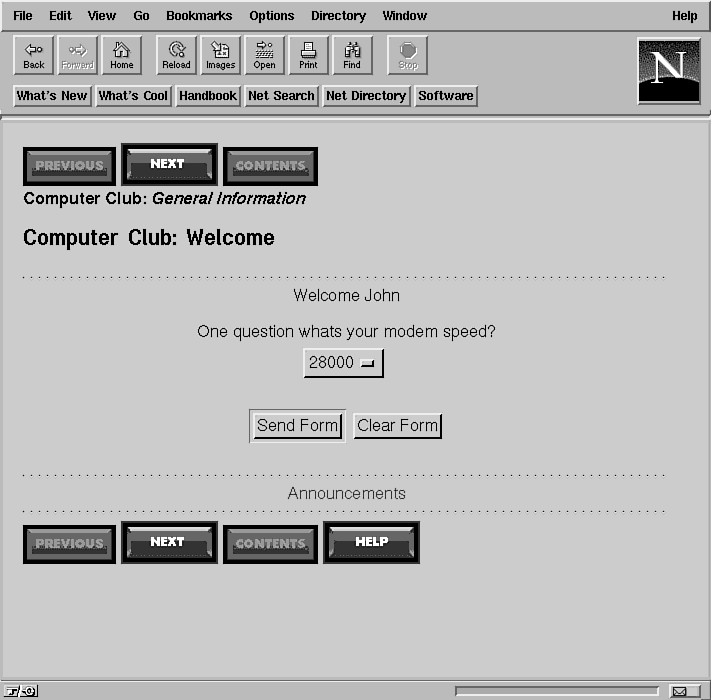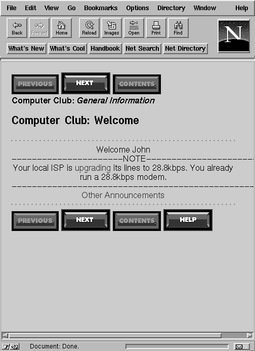 Figure 9.10: The Computer Club Welcome page, as seen by a returning visitor.