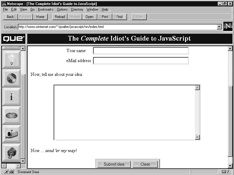 However, for various reasons, this may not be the most ideal system. Specifically, mailto: doesn't give you explicit control over the structure of the e-mail sent; for example, creating a specific subject line, if you're running a mail script that scans for such lines. While Netscape has made some extensions to the mailto: protocol permitting you to pass additional information to the mail client, they are not considered part of the standard (only Netscape browsers support them).