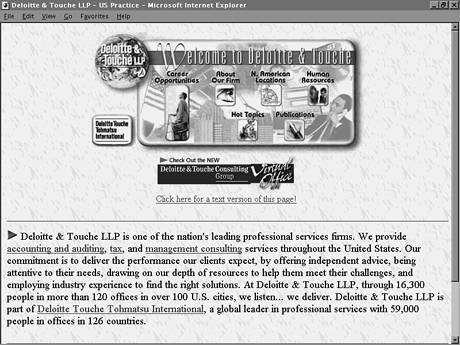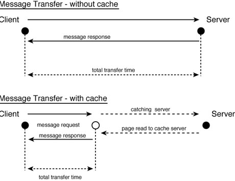 Providing Multiple Links within an HTML PageThe previous section examined the operation of the HTTP application protocol. This demonstration outlined how a Web client would make use of a separately established TCP connection to download each data object specified within a single HTML page. As previously mentioned, the use of multiple TCP connections between the client and server will reduce the total elapse time required to transport all the data objects specified within the page. However, there is a price to be paid. Each TCP connection requires the additional use of Web server resources, and it is very possible for servers to have difficulty in keeping pace with these requirements. This section outlines some simple HTML page design principles that will help to combat these effects and allow for more efficient use of resources. Figure 21.4 and figure 21.5 provide a comparison of two different Web pages. Figure 21.4 makes use of a number of individual icons to outline its contents. Each icon provides a reference to a URL guiding the user through the site. This approach is in contrast to that contained in figure 21.5. The web page in figure 21.5 uses a single graphic with URLs embedded behind different parts of the graphic to provide a map of the site. Figure 21.4. Figure 21.5. From the Web client's perspective, it is possible not even to notice a difference in download time between each of the pages. This is especially true if the browser has been configured to operate multiple simultaneous TCP connections. Even though the Web page on the right contains a number of individual graphic images, each of those images could be downloaded simultaneously. The main issues relate to the effective use of resources on the Web server. The map approach as indicated in Figure 21.5 indicates how this might be configured. The map would be a single graphic that would embed hyperlinks defined as URLs. This could then be downloaded over a single TCP connection as opposed to the four separate connections required within the icon approach. This allows the Web server to potentially support a larger number of uses for the same amount of available resources. Using a Cache to Reduce DownloadsThe outline specification of HTTP within the informational RFC1945 introduces the idea of a response chain providing a link between Web server and client. The RFC indicates that there may be a number of intermediate devices upon this response chain which will act as forwarders of any messages. It is possible for any intermediary devices to act as a cache--the benefits being both a greatly reduced response time and the preservation of available bandwidth within the Internet. Figure 21.6 illustrates how this might occur. It outlines that the communication path between the Web server and client is effectively shortened with the use of a cache on an intermediate server. The intermediate server is able to return requested web pages to the client if those pages exist within its cache. In order to ensure that up-to-date information is returned, the client will send a conditional GET request. Figure 21.6. The conditional GET request is made through the use of message request headers available within version 1.0 of HTTP. Listing 21.3 provides an example of how such requests would be structured. Listing 21.3. Making a conditional GET request.workstation> telnet www.dttus.com 80