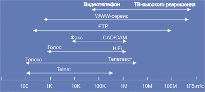 Рис. 1.6. Требования к пропускной способности канала для различных видов сервиса.