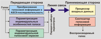 Символьное отображение голоса приводит к потере индивидуальных особенностей говорящего и эмоциональной окраски его речи. Системы распознавания людей по голосу уже существуют. Индивидуальные особенности голоса вещь достаточно стабильная. Если произвести анализ голоса конкретного человека и параметризовать эти особенности, то их можно будет использовать в дальнейшем в течение длительного времени. Если набор этих параметров записать на телефонную магнитную карту, то этой картой не сможет воспользоваться никто другой. Передача этих данных принимающей стороне может производиться в процессе установления телефонного соединения. В принципе можно параметризовать и эмоциональную окраску речи говорящего, но в этом случае это нужно делать в реальном масштабе времени. Реализация предлагаемой схемы будет приводить к дополнительным задержкам, но при использовании быстродействующих процессоров эти задержки можно минимизировать. Снижение требуемой полосы пропускания вместе с повсеместным внедрением протоколов RTP и RSVP сделает беседу через Интернет общедоступной.