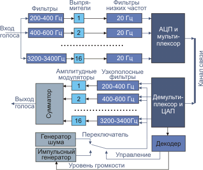 Рис. 2.4.2.1. Блок-схема кодирования/декодирования человеческого голоса (Vocoder)