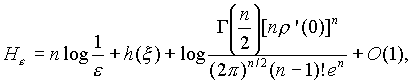 Пусть r(x,y) = r(|x-y|) и существует производная r’(0), 0< r’(0)<∞. Тогда при e ® 0 имеет место асимптотическая формула, в которой логарифмы берутся по основанию e: