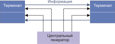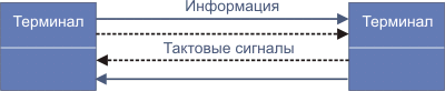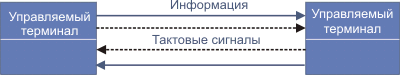 Во втором варианте терминалы неравноправны - один из них управляющий, другой - управляемый. Тактовые сигналы идут в этом случае только от управляющего терминала.