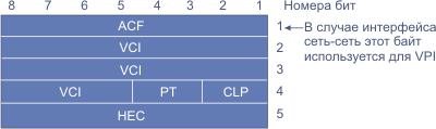 Поле ACF (access control field) служит для управления доступом. Поле VCI (virtual cannel identifier) - виртуальный идентификатор канала. Далее следуют поля: