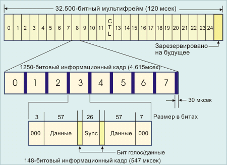 Рис. 4.1.8.1.3. Структура кадров в GSM