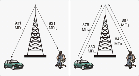 Рис. 4.1.8.1.2. Каналы пейджерной (слева) и мобильной телефонной сети (справа).